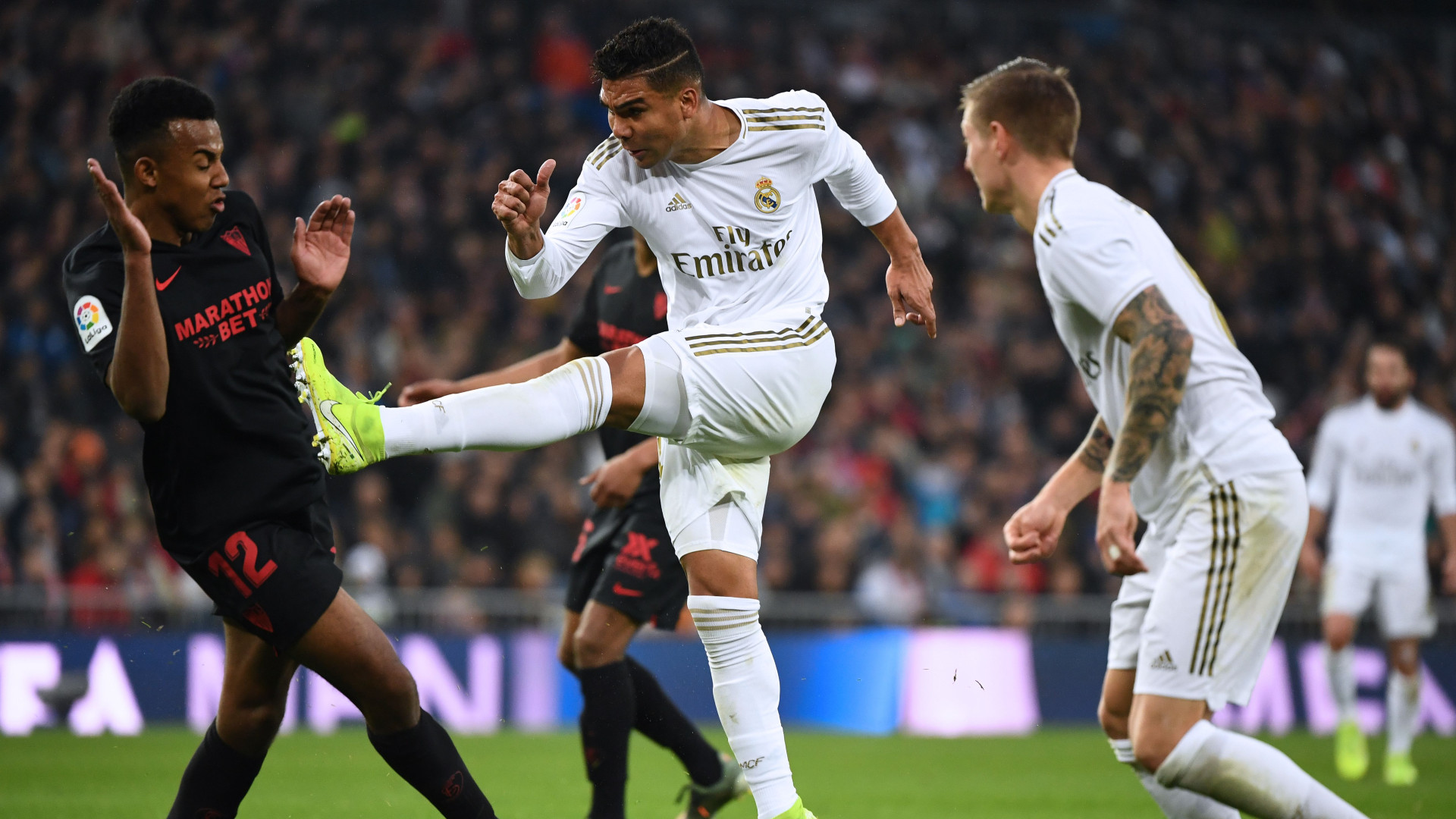 Casemiro and luka modric scored the goals of the victory. Real madrid are dominating possession now, and even when sevilla prise the ball away. Real madrid has not conceded in 1st period in 8 last home games. Bono, acuna, diego carlos, fernando, gomez, jordan, kounde. Sevilla were denied a victory that would have taken them within four points of the lead and julen lopetegui's side now look.