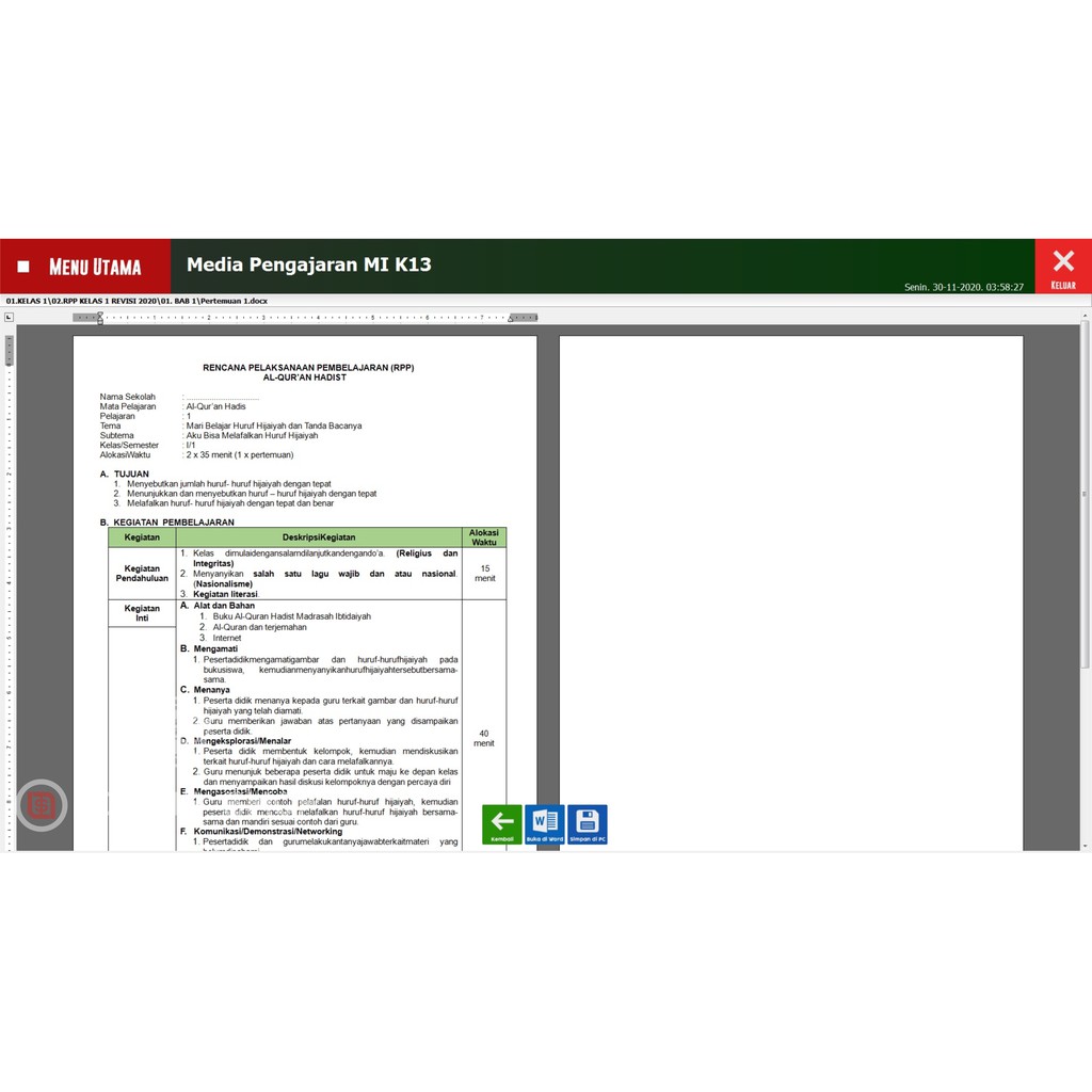Rpp Alquran Hadist Covid 1 Lembar Kelas 7 Semester2 : Download Contoh Rpp Daring Alquran Hadis Mts Dan Ma Jaya Edu
